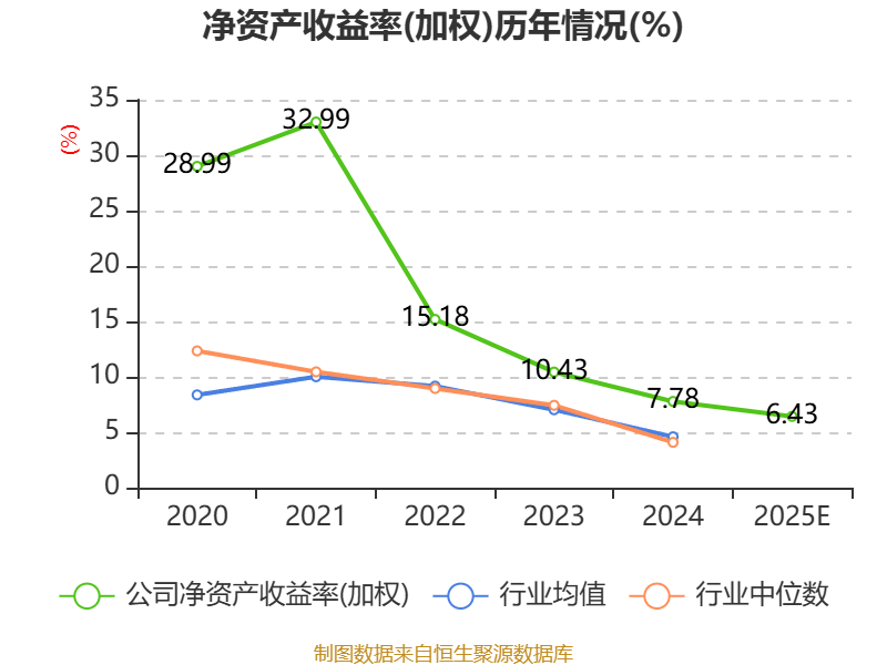 数据显示,2025年公司加权平均净资产收益率为6.43%,较上年同期下降1.35个百分点。